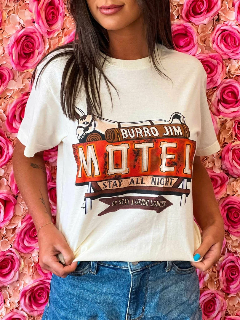 Burro Jim Motel. Stay All Night Or Stay A Little Longer Tee. Unisex fit. Custom-made just for you!