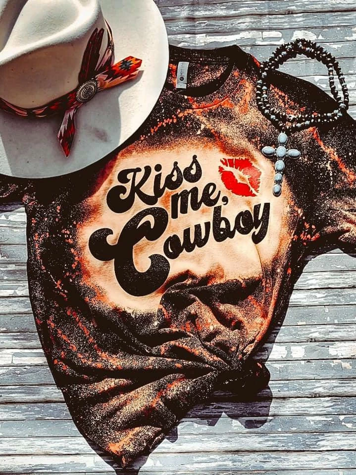 This bleached tee is too cute! You will have all the cowboys wanting to give you smooches! This tee gives off so many western vibes!