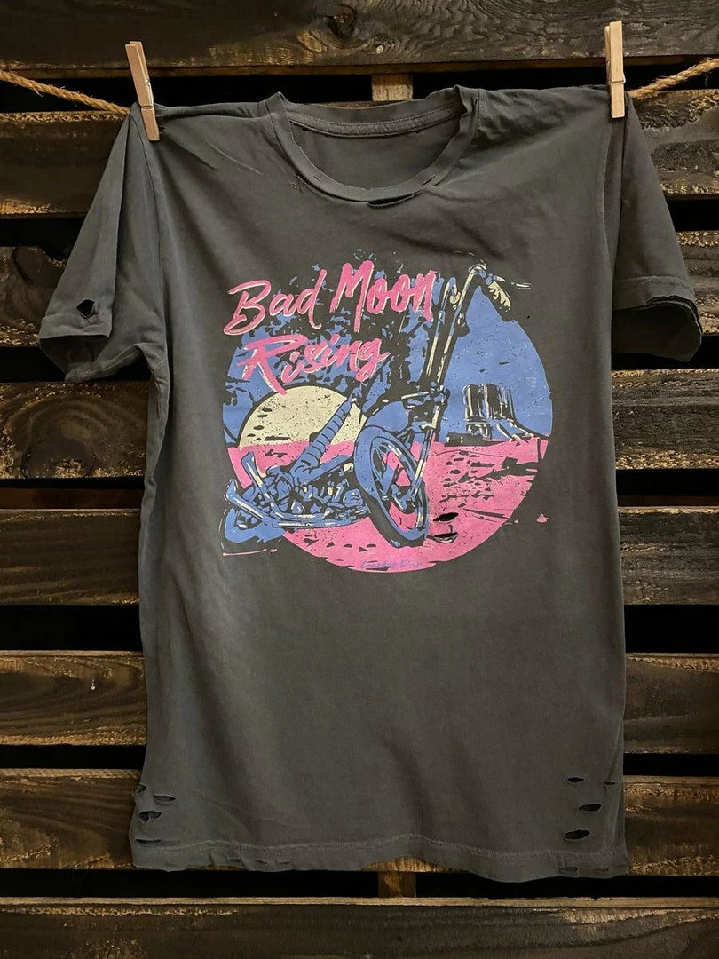 Bad Moon Rising vintage distressed 1980’s unisex T shirt available in faded black
