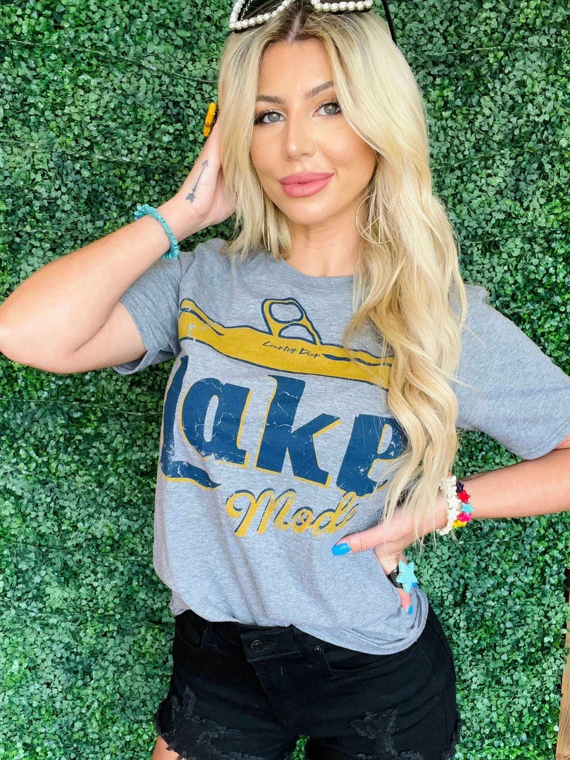Lake Mode T shirt. If you love having a party on the lake we have the tee for you! This vintage vibe is a must! Perfect with your favorite beer in hand and your lake apparel.Â