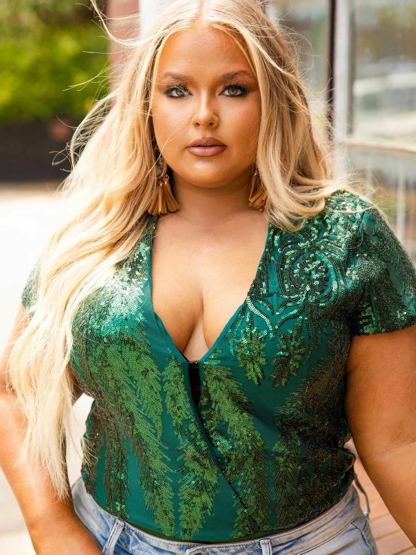 Emerald Green Sequin Wrap Top Bodysuit