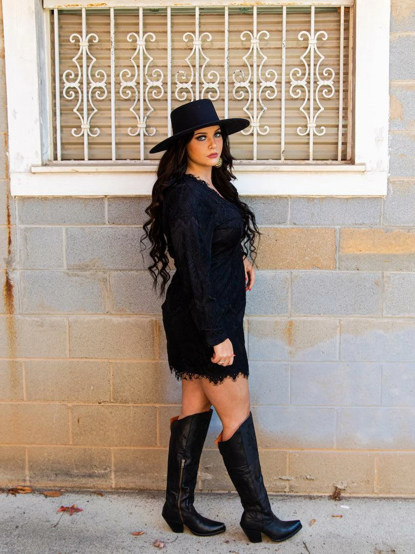 This lacy long sleeve little black boho mini dress makes a great date night number. Fun, flowy, lacy, and light, it’s perfect for a warm night on the town or an evening out with your besties. This black boho mini looks amazing with a lovely set of new boots. The deep V neckline is sure to turn heads or capture the attention of that someone special. For a pop of color with this long sleeve boho mini dress, add one of our bralettes. The stretchy material and fitted band waist will fit anyone; it even comes in plus sizes!