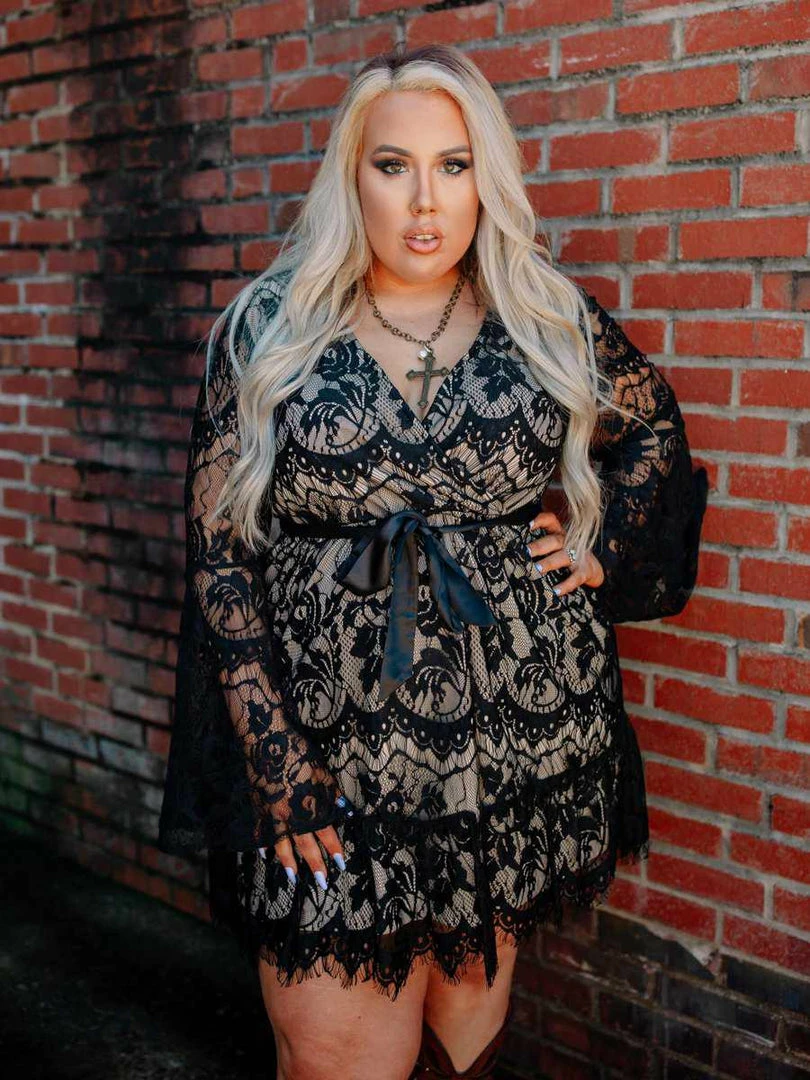 Lace has always been a southern chic trend. That is why our Lacey Belle Dress is going to be your forever dress! Paired with your favorite western boots or dress it up with heels! This dress features a neutral tone lining and has a v-neck neckline with an elastic waist. The sleeves are a beautiful belle sleeve and they are not lined. At the bottom, the dress has a ruffle of lace. A black satin belt is included with this dress, but not attached.