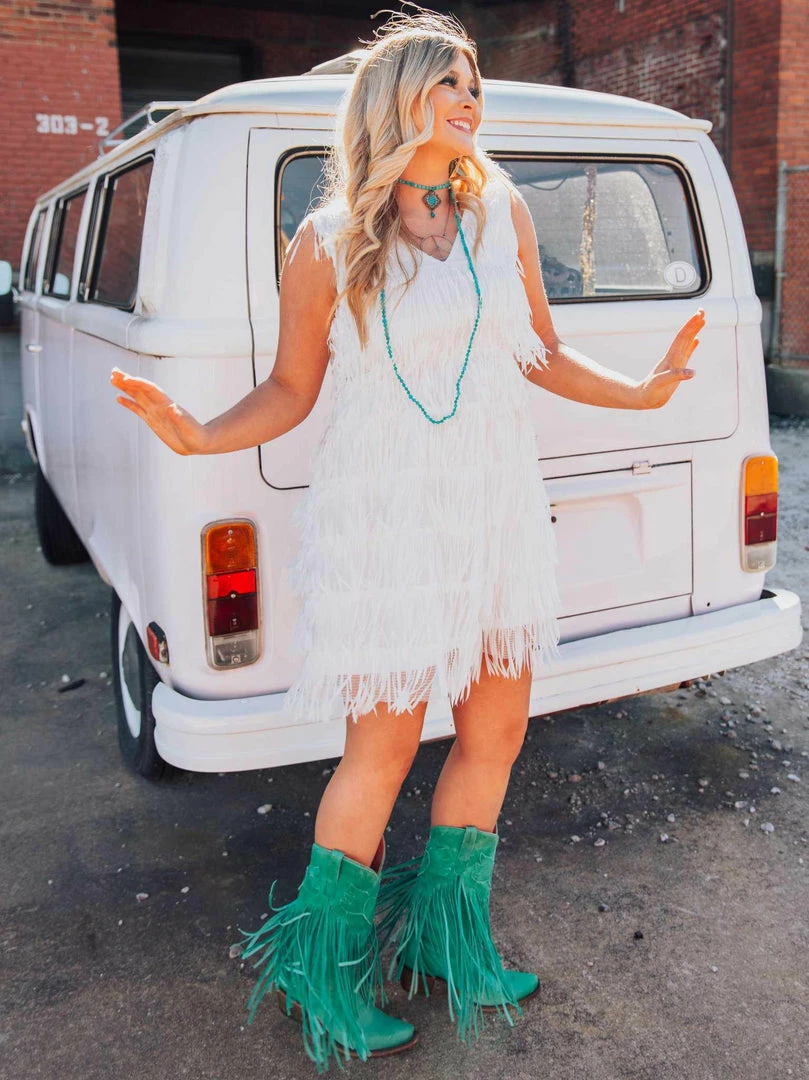 Get ready for some fun in fringe. Inspired by the legends of vintage country music, the Promise Forever dress features a beautiful fringe design throughout for the ultimate Southern Fried Chic look.Β