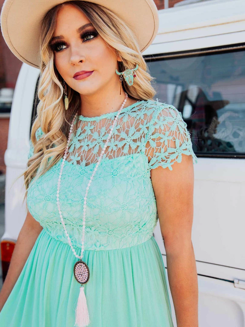 Let the good times roll in the Summer Nights Dress. Fun, flirty, and ultra feminine with its floral applique overlay and flowy skirt. Plus, it easy to wear and super comfy as it features an elastic waist, so you can move with ease everywhere you go this summer. Dress it up or down with heels, sandals, or boots.Â