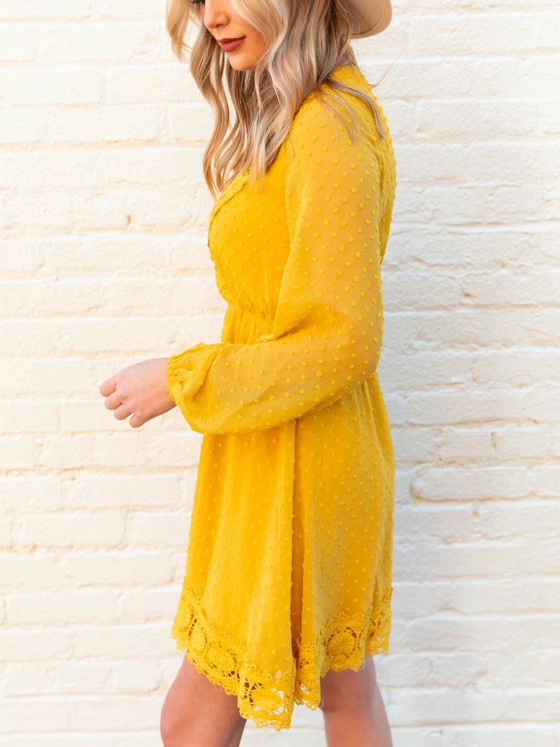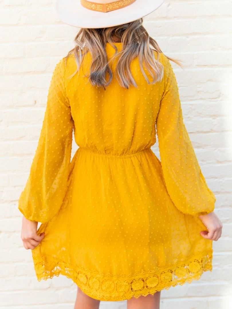 Be the life of the party with this bright This One’s For The Ladies Dress! This dress comes drenched in a vivid color of happy mustard. Effortlessly makes you stand out in a crowded room with its unique color and design. The embroidery details coupled with the see-through fabric creates an enviable silhouette around your body!