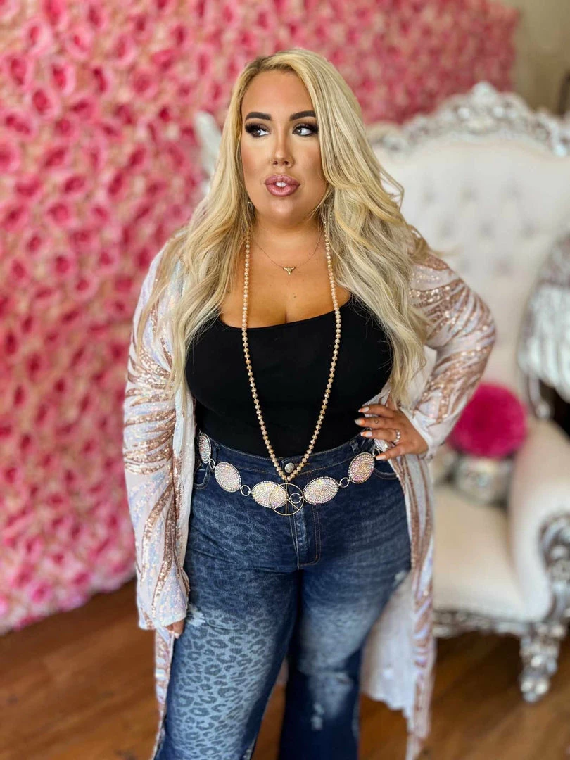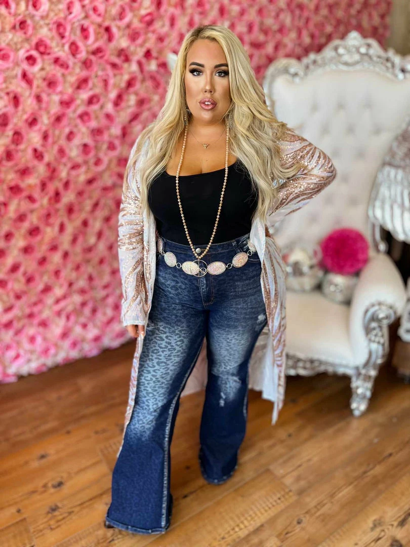 This handmade long kimono sequin duster is absolutely AMAZING! Great for special occasions, dates, or concerts. Even special for holidays like Christmas and the 4th of July. With its lightweight flatteringΒ fit, it is sure to have you sparkle and shine anywhere you go! This piece is a LIMITED EDITION! Pair a duster with your favorite tops, bottoms or dresses for a sassy look!