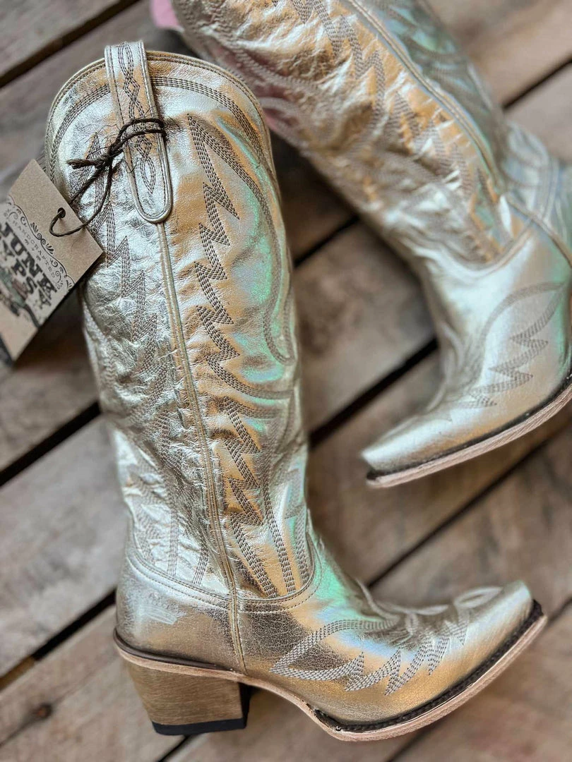 These boots are a showstopper! The champagne metallic finish is perfect for adding a pop of glam to any outfit. They are comfortable and durable, making them great for both casual and formal occasions. Highly recommend!