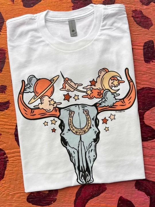 Cosmic skull t-shirt. A graphic tee for your favorite Western look.