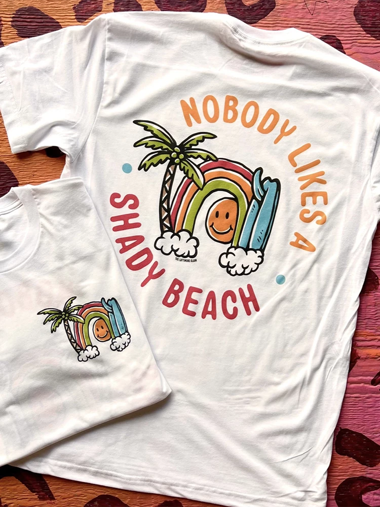Summer fever is here! This t-shirt is perfect for the chic who loves the beach and not a shady one! Printed on a soft style unisex tee. Big design on the back and pocket design on the front.