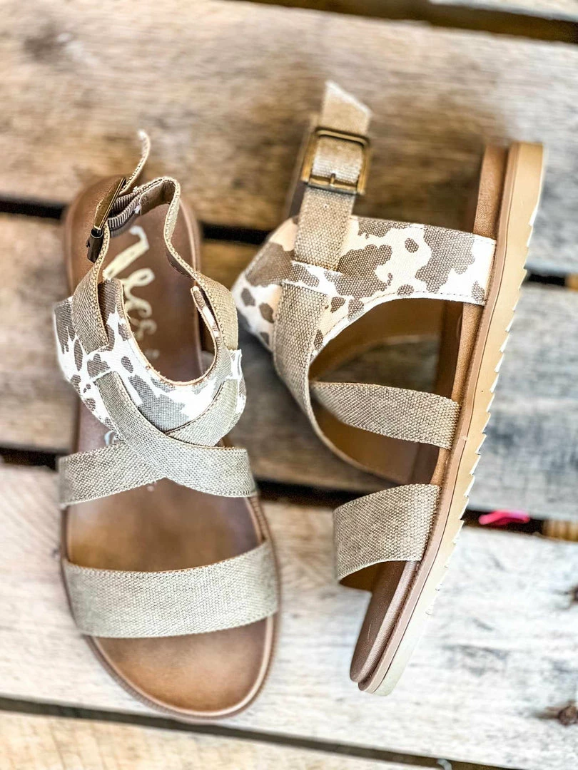 Your new favorite sandal! The cow print and beige combo is a must! Pairs perfectly with everything in your summer wardrobe!Â